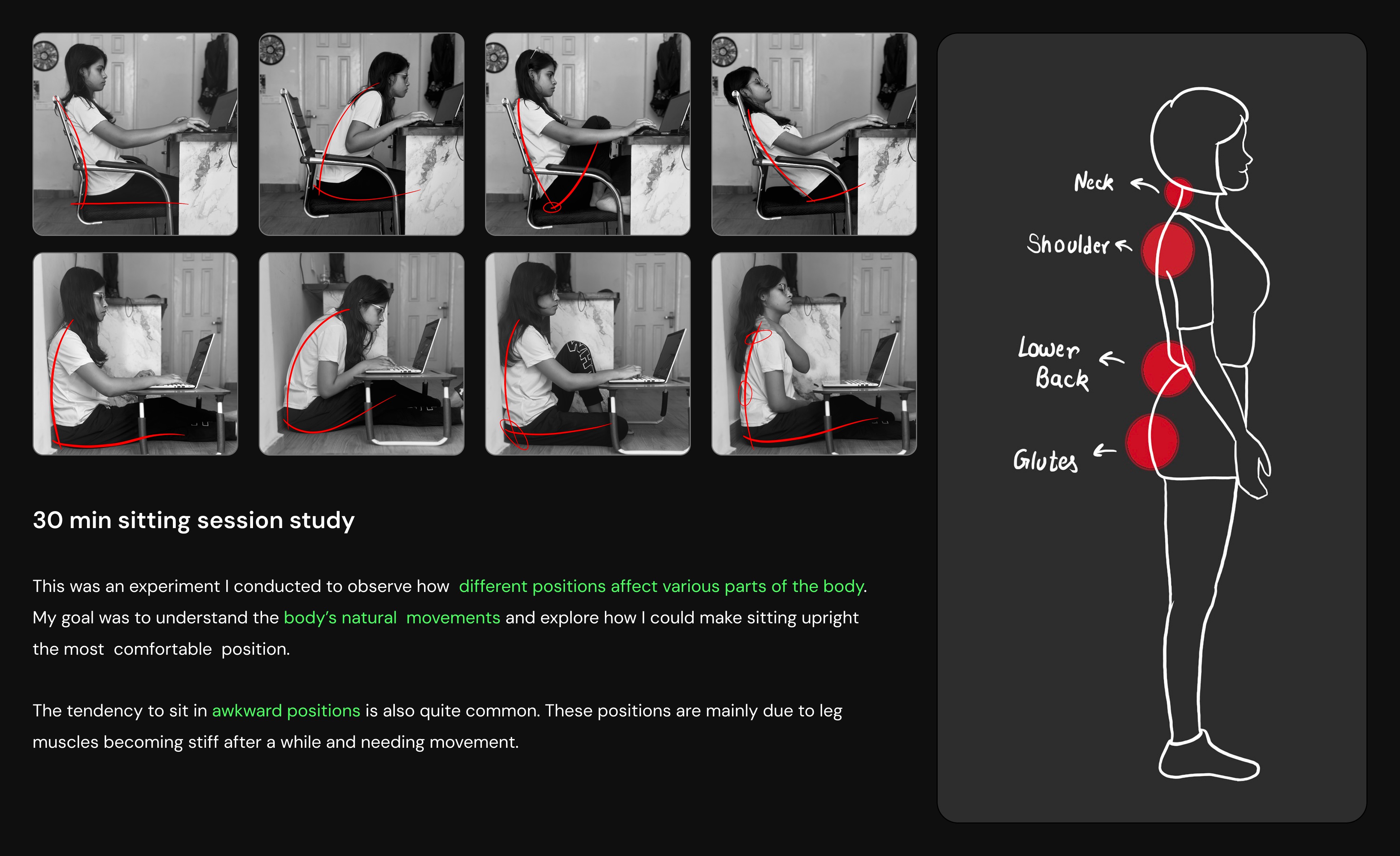 People have a hard time keeping good posture, which eventually leads to sore spots.